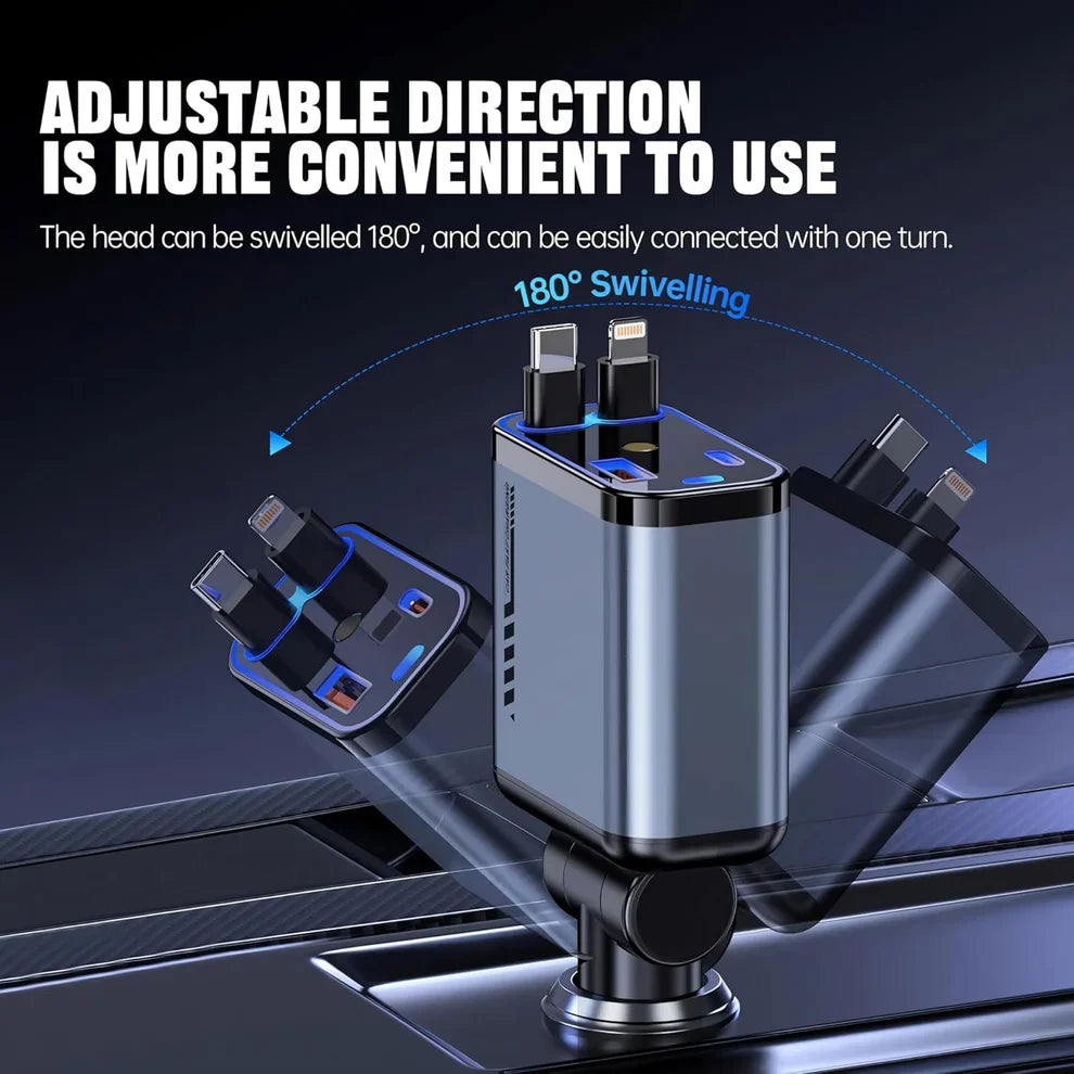 أربعة كابلات قابلة للسحب تتيح لك شحن أربعة أجهزة في نفس الوقت بدون أي فوضى.